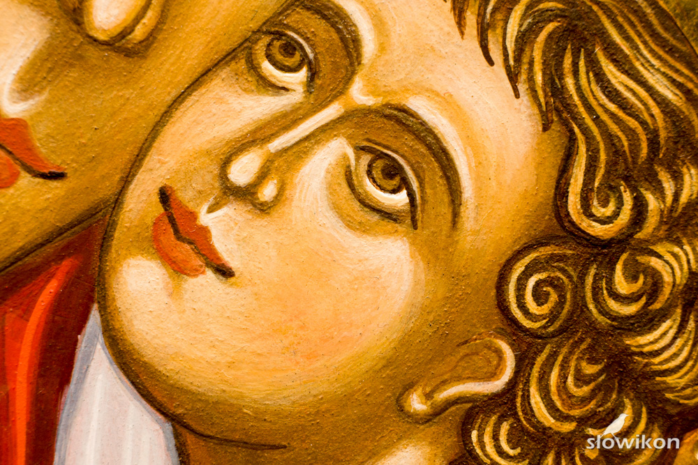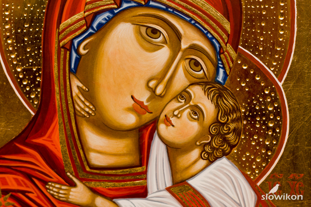 Napisałam ostatnio ikonę przedstawiającą Matkę Bożą w typie ikonograficznym nazywanym Eleusa.
