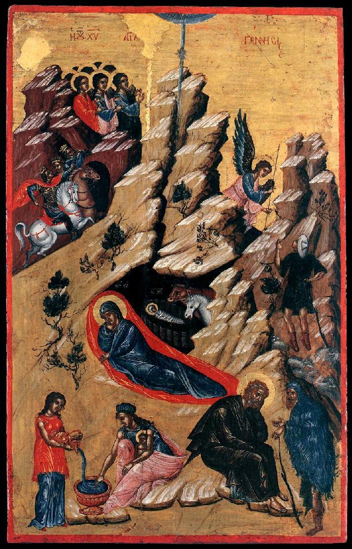Wschodni kanon ikonograficzny przedstawiający Boże Narodzenie, bazujący na przekazach Pisma Świętego, apokryfach oraz liturgii, jest dużo starszy niż nasza, zachodnia tradycja przedstawiająca narodziny Dzieciątka w szopce, z adorującymi dzieciątko Maryją i Józefem, pasterzami i trzema królami.