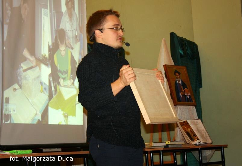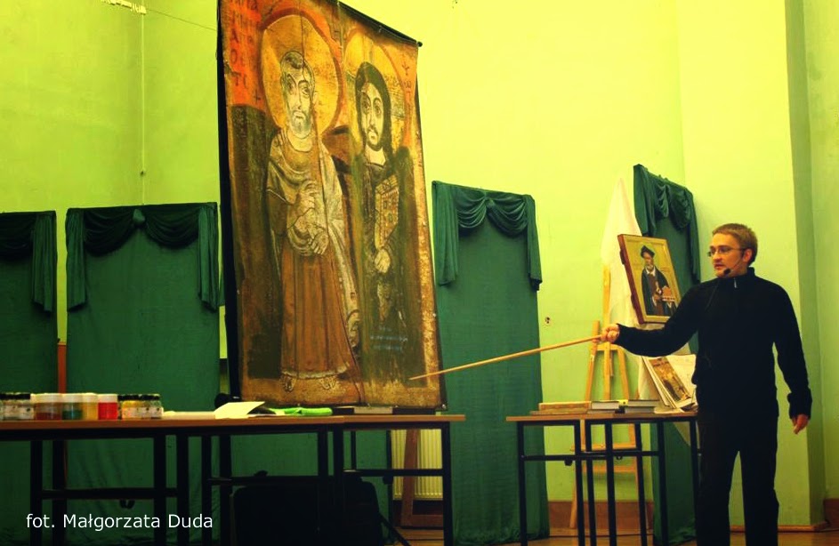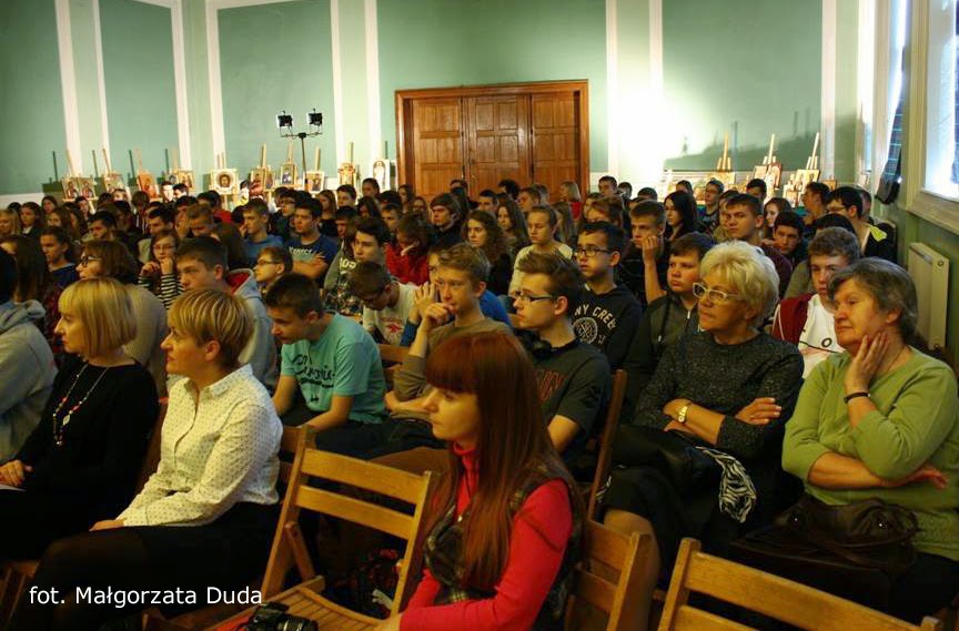 Prelekcję wygłosił ks. Stanisław Zioła, znawca tematyki ikon i wielki pasjonat tego tematu. Na zaproszenie ks. Stanisława miałam możliwość zarówno wzięcia udziału w prelekcji, jak i w wystawie prac. Ucieszyło mnie to, gdyż mogłam odwiedzić szkołę, której jestem absolwentką, i gdzie języka rosyjskiego uczyła mnie inicjatorka tego spotkania, którą z czasów liceum bardzo miło wspominam.