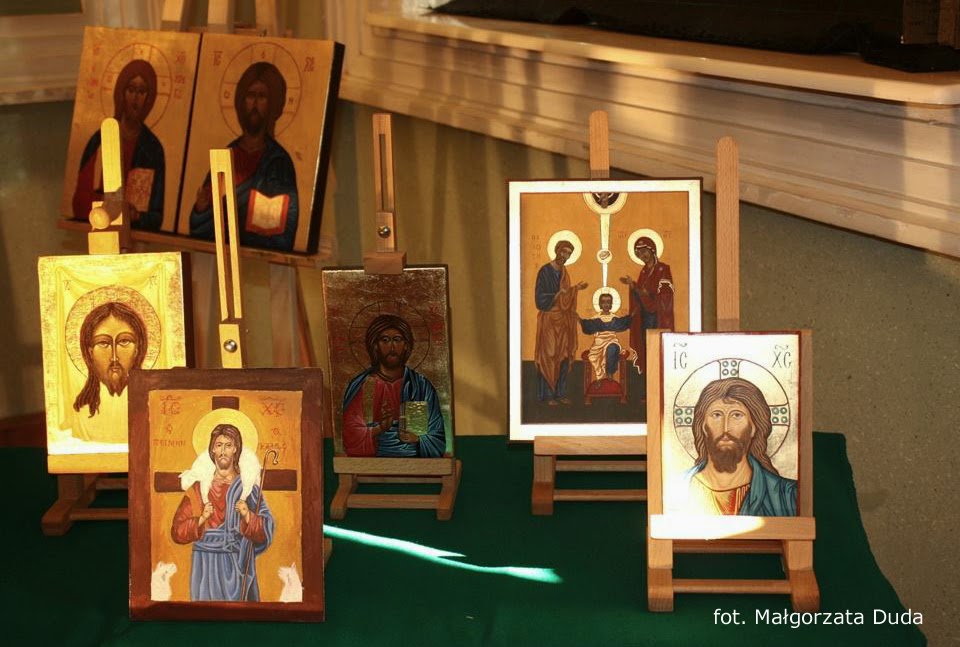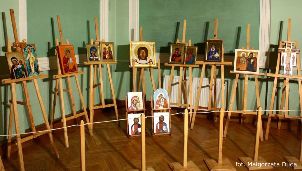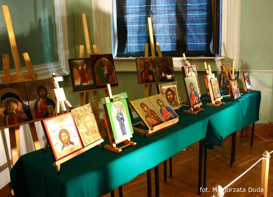 Prelekcji towarzyszyła zaaranżowana w auli wystawa ikon, powstałych w Kluczborku i okolicach. Zostały zaprezentowane prace osób związanych ze szkółką ikonopisarskią „Theotokos School”, ikony napisane przez Siostry Józefitki w pracowni ikon Św. Józefa istniejącej kluczborskim klasztorze, a także kilka moich prac.
