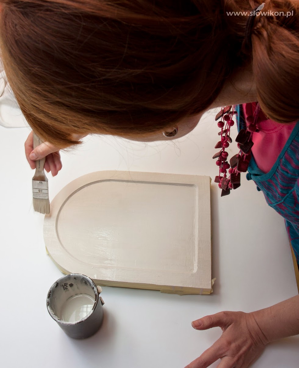 Deski ikonowe nabywam gotowe, ale nie kupuję desek już zagruntowanych. Sama przygotowuję i nakładam lewkas, gdyż mam wtedy pewność rodzaju gruntu i jakości wykonania.