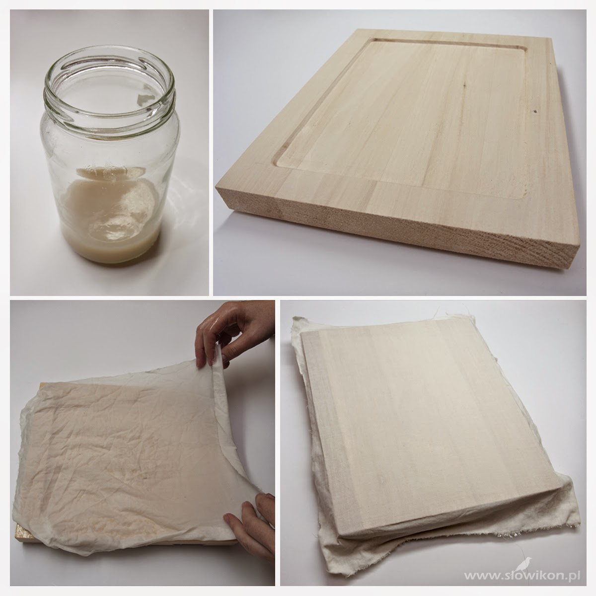 Gdy już mam deskę to przygotowuję odpowiedni roztwór wody klejowej, używając do tego naturalnego kleju skórnego lub króliczego. Tym klejem przyklejam na deskę kawałek płótna. Trzeba to zrobić dokładnie, by po wyschnięciu powierzchnia płótna była gładka, równomiernie, dokładnie przyklejona do lica deski.