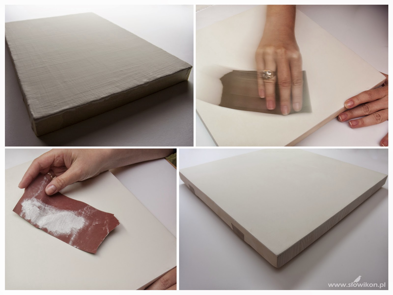 Ostatni etap to wyszlifowanie warstwy lewkasu. Po nałożeniu wielu warstw i wyschnięciu, nie jest on idealnie gładki, a powinien być gładki jak lustro 🙂 Zatem trzeba go wygładzić używając do tego papierów ściernych o odpowiedniej ziarnistości. Gdy powierzchnia jest zupełnie gładka deska jest gotowa do dalszej pracy. Wtedy dopiero nanoszę na nią przygotowany rysunek, złocę i zaczynam malowanie.
