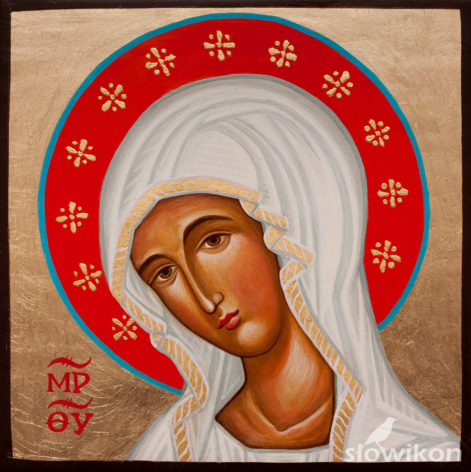 Ikona ręcznie malowana tradycyjną techniką tempery jajecznej, na desce pokrytej gruntem kredowym. Zdobienia wykonane złotem 23 ct.